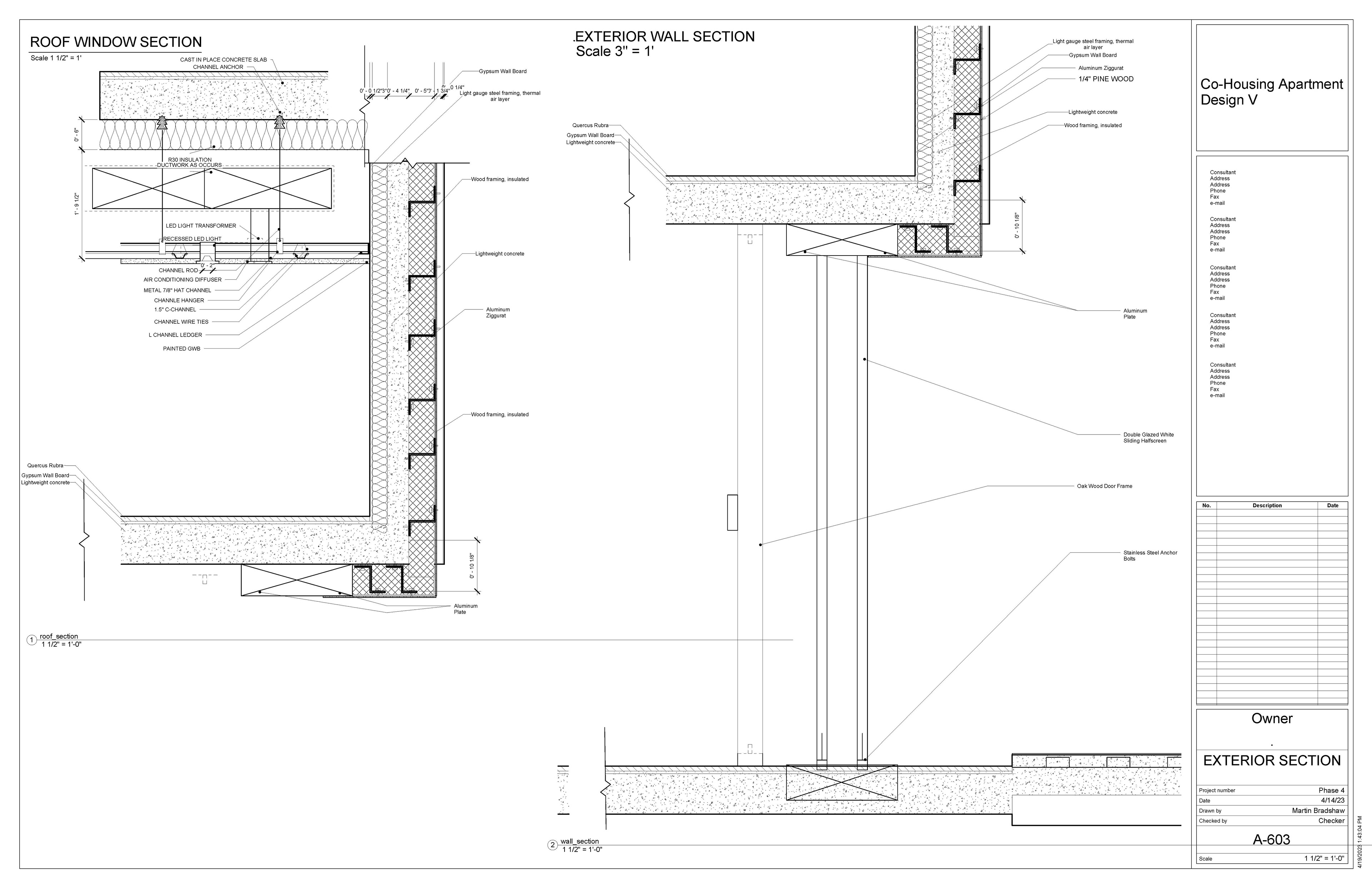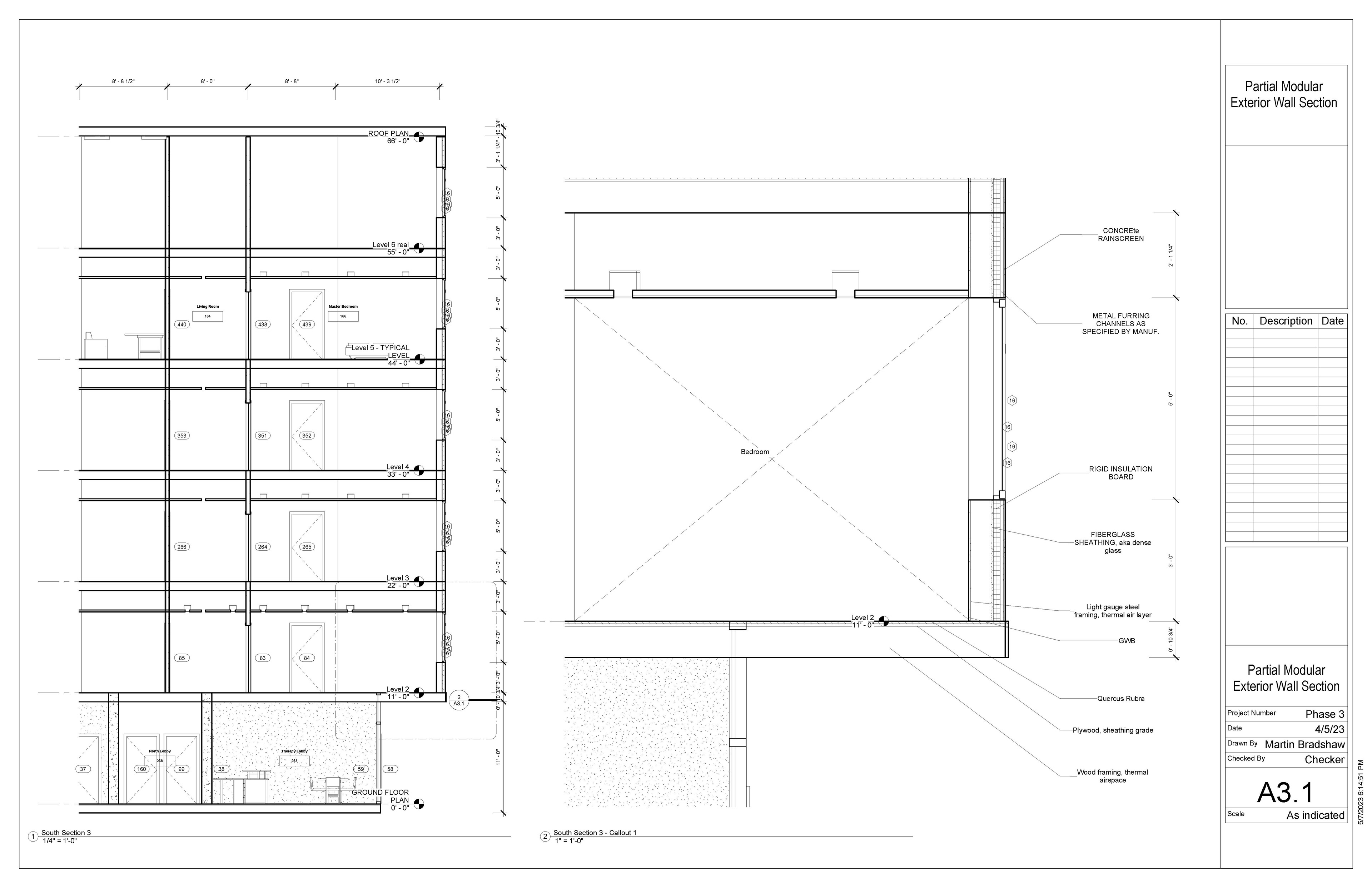 Construction Documents of the assembly systems used in the Co-Housing Apartment Complex from Semester V. Generated in Revit 2023
